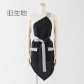ちょっと目を引くユニークな形。ひと目ではどんなふうに着るのかわからないエプロンです。こう見えても、作りは意外にシンプルなのです。 あまりにシンプルで「?」となる方もいらっしゃるので「着用のしかた」のカードを付けています。ご安心を。
