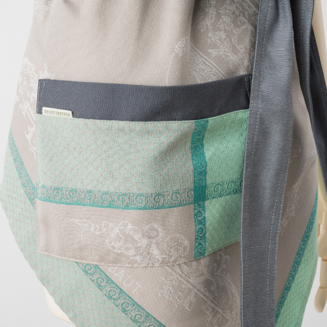 フランスが世界に誇る織物「ジャカード織」のリネンブランド、「ガルニエ・ティエボー」のトーション(キッチンクロス)を利用してワンショルダーエプロンを作りました。素敵なジャガードに魅せられ、ガルニエの日本代理店さんにお願いして作らせていただいたものです。数が少ないのでお早めにお求めください。