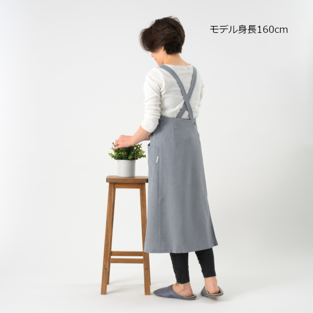 腰ひもは前でも後ろでも結べます。肩ひもは、ボタンを留める場所によってお好みの着心地を選べます。